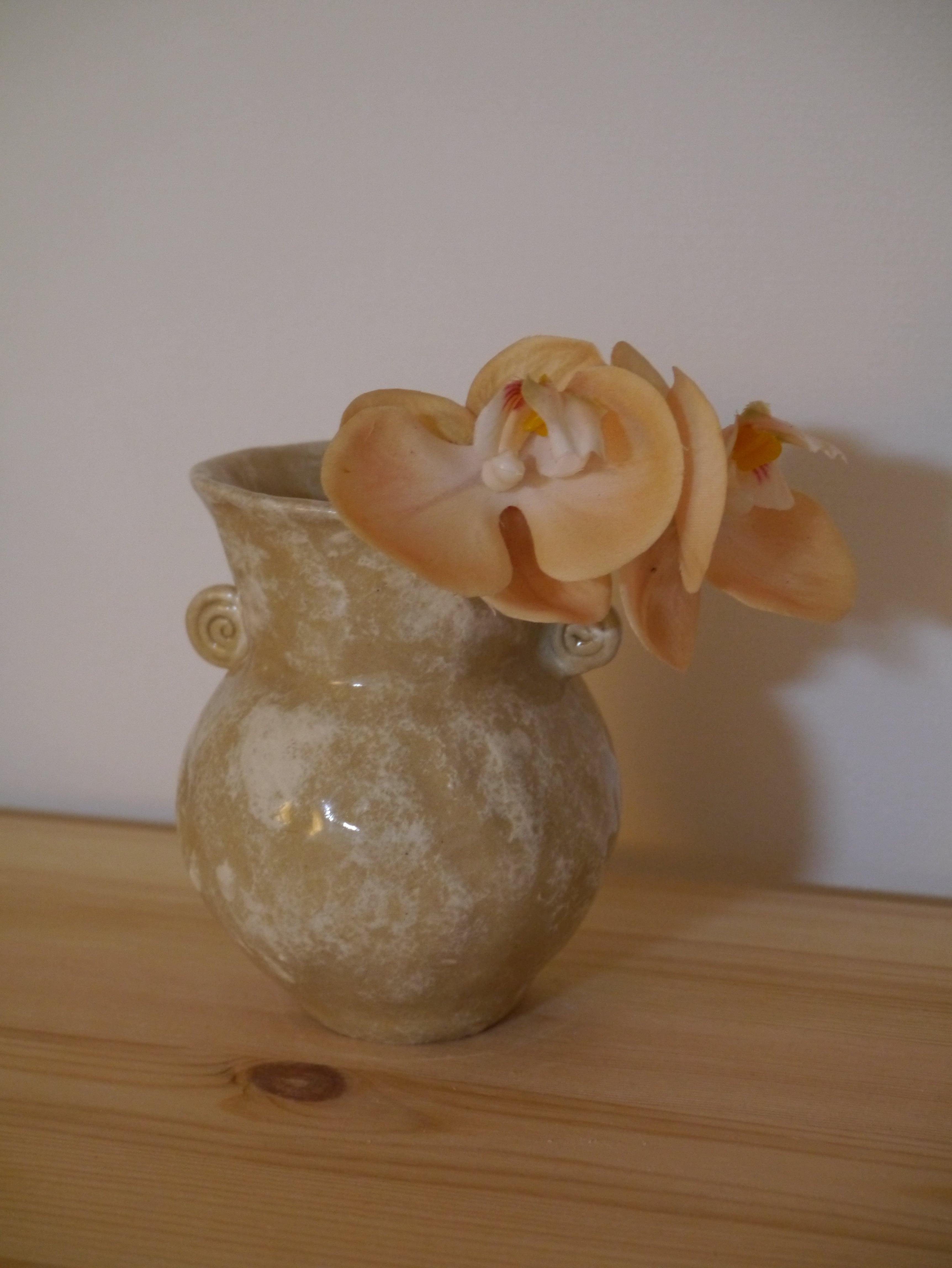 手びねりにて形づくられた花器。